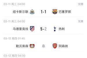 利物浦率先出戰客場0-1不敵加拉塔薩雷,紐卡主場1-1遭巴薩絕平,熱刺則是客場2-5慘敗。