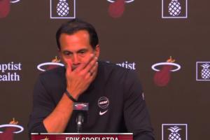 賽后,熱火主教練斯波點評阿德巴約表現時說道:“這是一個超現實的夜晚,我們在這座球館里見證過太多奇跡,今晚這就這么發生了,我們很幸運,能夠見證這一刻。第一節的表現就是一頭怪獸,半場40+,半場休息的時候我們還是在說就正常打我們的比賽,但球就是在不斷的找到他。一旦他得到50分,我們就認為他能得60分,一旦他得到60分,我們就說得70分吧,我從那時候起就沒想過,甚至不敢換下他,我想讓他享受生涯之夜,讓他享受球迷的歡呼,我不知道他的得分什么時候會停止,但他一直在得分,最終我在他得分超越科比后才把他換下來。”