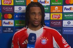 體育資訊03月11日訊 拜仁6-1亞特蘭大賽后,奧利塞接受CBS演播室亨利、理查茲等人的采訪。