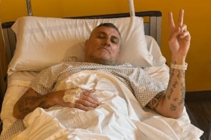 圖中他穿著病號服,面帶微笑,對著鏡頭比出勝利的"V"字手勢。維埃里在照片下寫道:這一關也闖過去了。