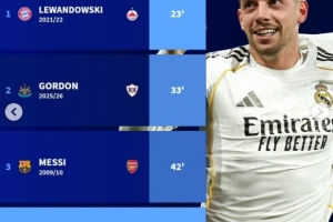 體育資訊3月12日訊 在本輪歐冠淘汰賽,皇馬3-0大勝曼城,巴爾韋德在42分鐘就完成帽子戲法,以下為歐冠歷史淘汰賽階段最快完成帽子戲法榜單: