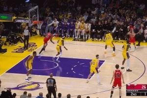 GIF-河村勇輝迎著詹姆斯命中三分