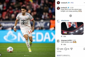 體育資訊3月15日訊 德甲第26輪,拜仁1-1戰平勒沃庫森。賽后,拜仁邊鋒路易斯·迪亞斯在社交媒體發文,鼓勵球隊。