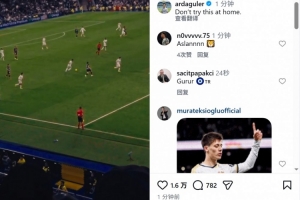 居萊爾社媒曬出吊射破門的視頻,調侃配文:“不要在家里嘗試這個。”