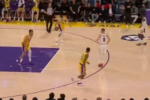 GIF-東契奇要害被打到